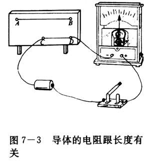 实验2在图7-1所示的实验中,改用横截面积相同而长度不同的两条镍铬合金钱(图7-3)分别将它们接入电路,观察与流表的示数。